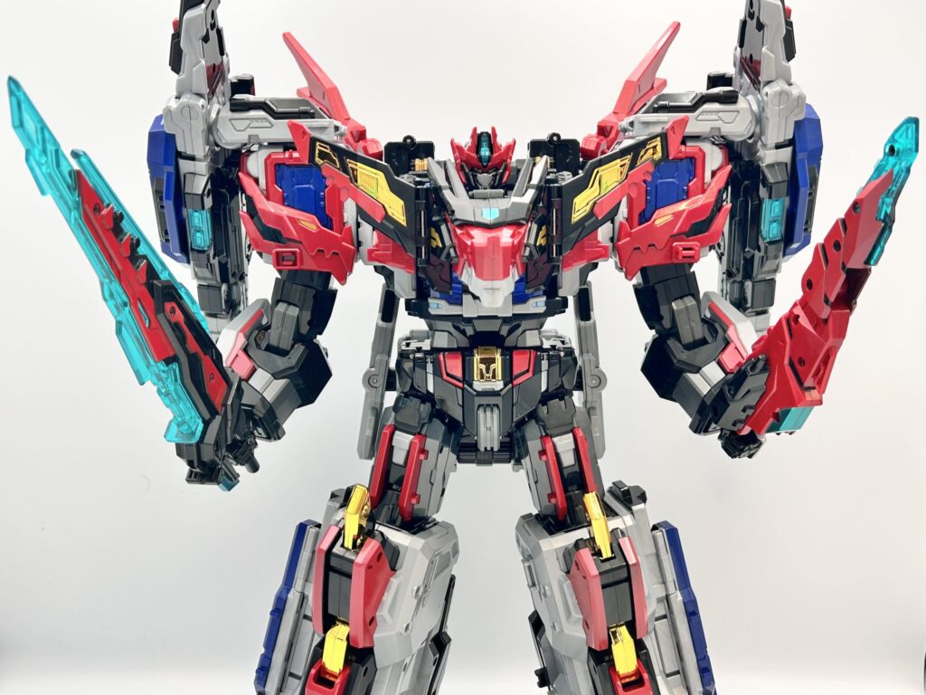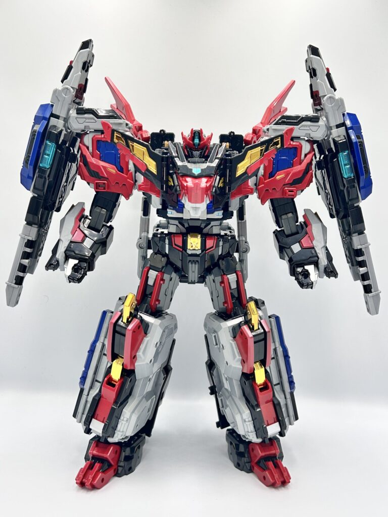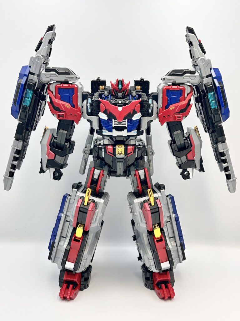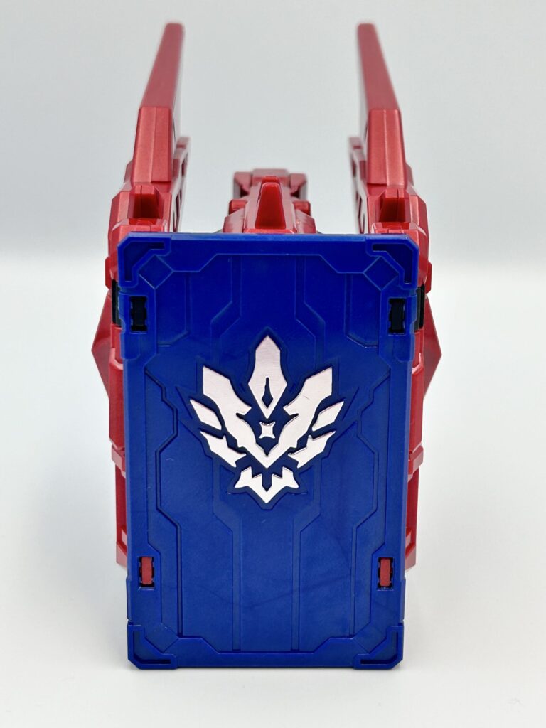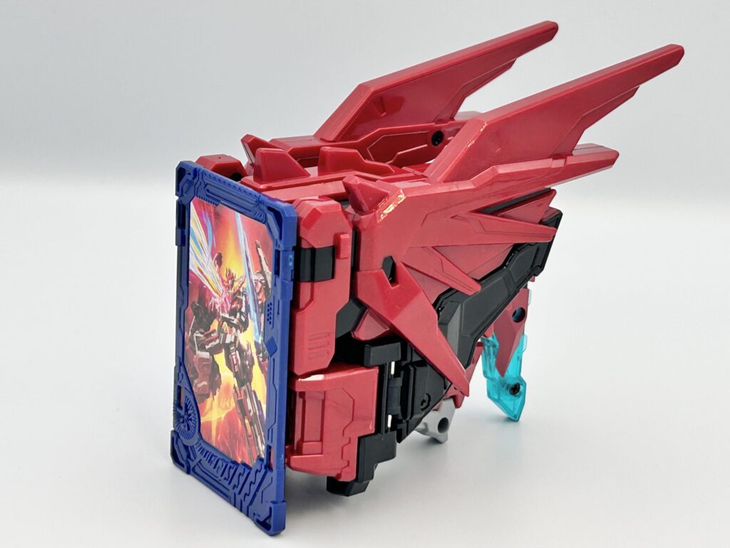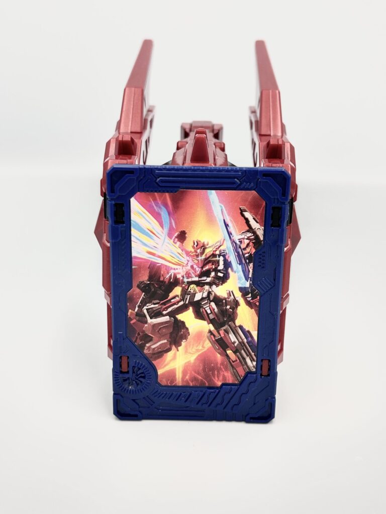 屈強で力強い造形美で、眺めていてもとても楽しいです。付属している武器も大きく体に見合った大きさをしています。メタルカード装着状態ではさらにインパクトが増し、武器も長く大きくなるので、迫力と威圧感が凄まじいです。