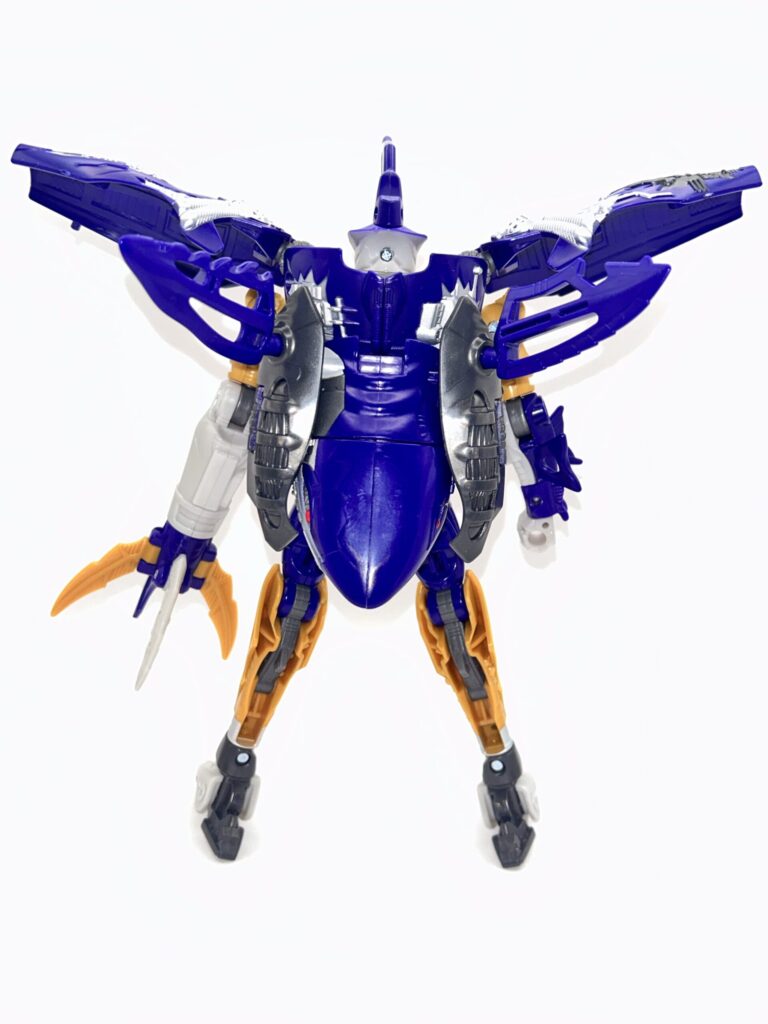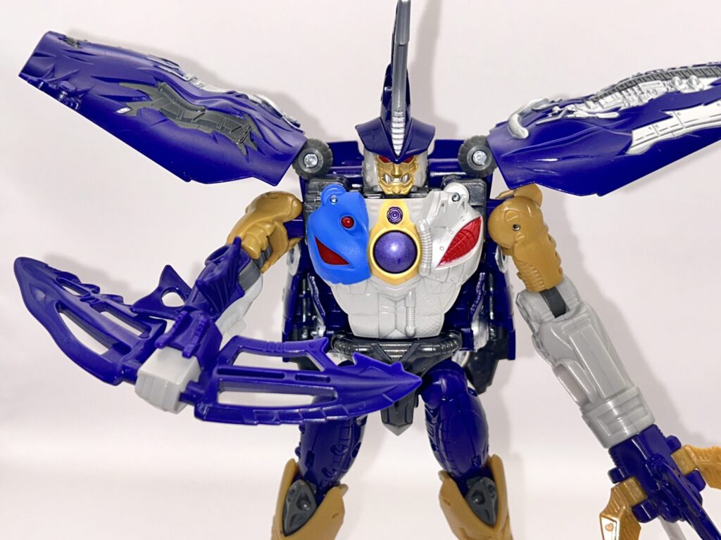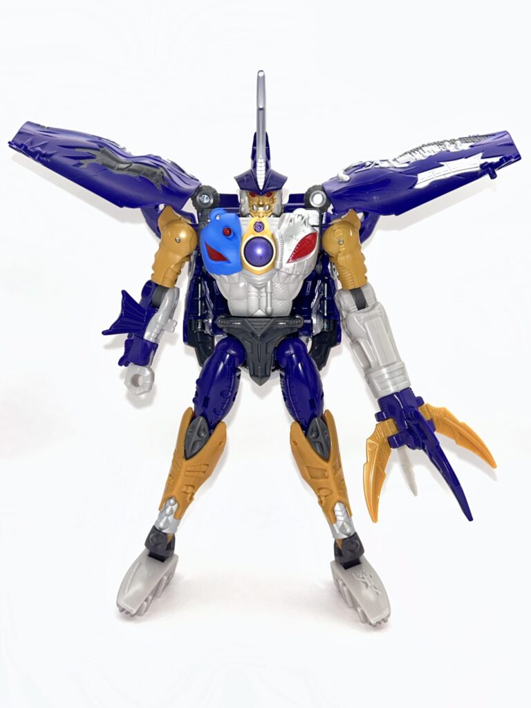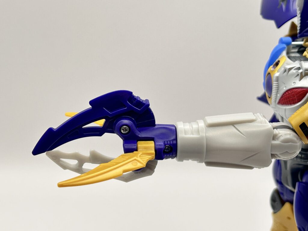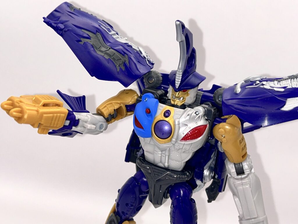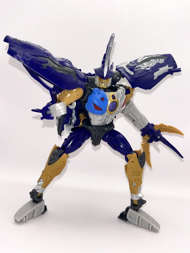 トランスフーム後は、尾ビレが左腕に変形した巨大な『アンカーアーム』と、ビーストモード時の背ビレが変形した頭が印象的な姿になります。変形も難しくないです。何度も変形させたくなります!